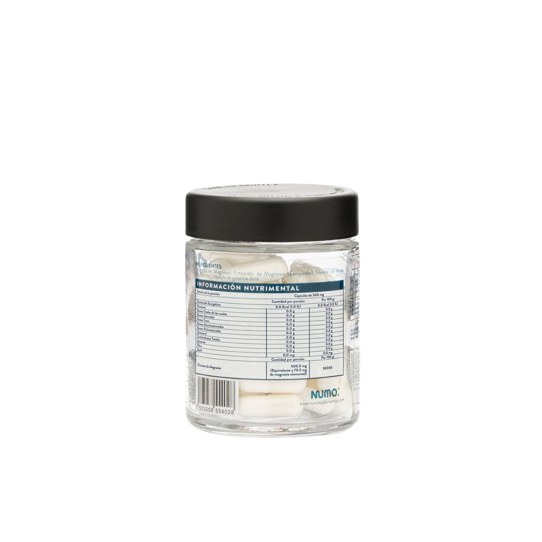 Ingredientes: Glicinato de Magnesio, Estearato de Magnesio (Excipiente), Harina de Arroz (Excipiente), cápsula de gelatina dura.