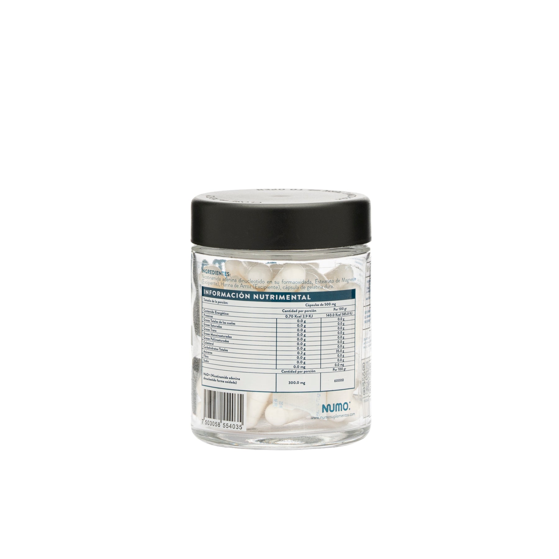 Ingredientes: Nicotinamida adenina dinucleótido en su forma oxidada, Estearato de Magnesio (Excipiente), Harina de Arroz (Excipiente), cápsula de gelatina dura.